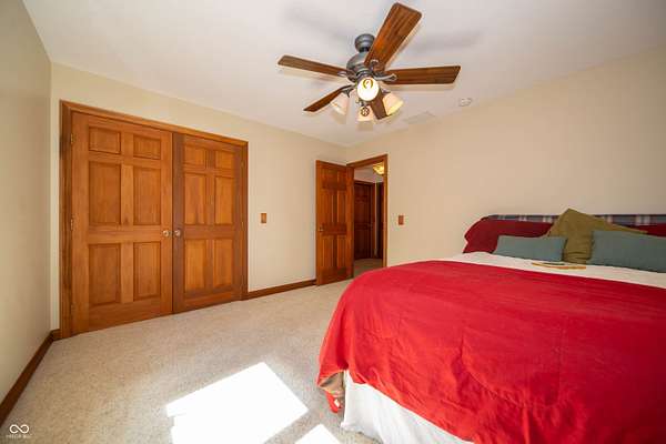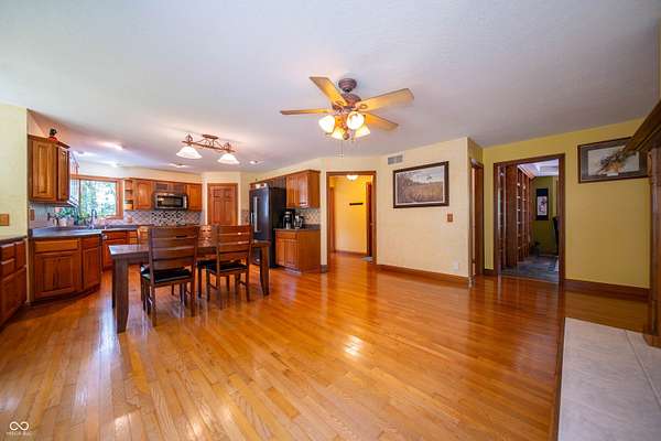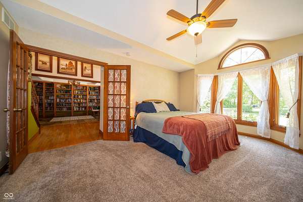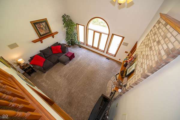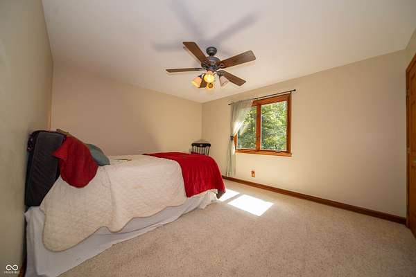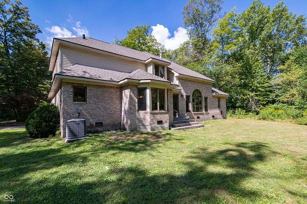 Executive Home on 5 wooded acres presents an opportunity to embrace refined country living. Brick 4 bed/2.5 bath custom home offers a harmonious blend of comfort and sophistication. Rich natural wood flooring, trim, doors, and built-in shelving provide a touch of classic flair throughout the home. The parklike property includes a 42'x48' pole building/workshop ideal for hobbies (that classic car!). Features 6" concrete floor, 14' ceiling, and 16'x12' overhead door. Fully insulated and finished inside with metal paneling. When entering the house, you are greeted by a two-story foyer that leads to an expansive two-story great room. A dual-sided fireplace is the centerpiece of the home and provides a partition, but not separation, between the large kitchen and great room. The kitchen is a true chef's delight with recently updated KitchenAid appliances and features a large movable island that allows for the area to be configured to match the needs of the chef. Off the foyer is also a library with custom built-in bookshelves & slate/tile flooring. 1st floor primary suite consists of a large bedroom with vaulted ceiling that adjoins a spa-like bathroom featuring a jetted jacuzzi tub, a tiled walk-in shower, double vanity, and water closet. Suite also includes a spacious walk-in closet. 2nd floor features 3 large bedrooms, full bathroom, second laundry room (additional laundry room on 1st floor), and a bonus room. Features/Updates: Saltless Water Softener/Whole House Filter 2023, reverse osmosis drinking water 2023, Roof August 2025, HVAC System 2019, Crawlspace Encapsulation w/Dual Sump Pits 2016, KitchenAid Appliances 2019, Pole Barn 2017, Carpet 2015, SimpliSafe Security System, All Wood Trim and 6 Panel Doors. Location+ easy access to I-65, Lafayette, Indianapolis, Leap District and Eli Lilly's New Facilities. Western Boone Schools. Trophy Club and Ulen Golf Courses are close along with the Big Four Trail, Stone Eater Bike Course, Memorial & Seashore Water Par