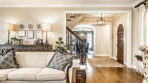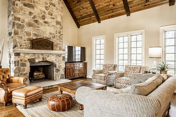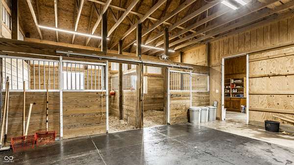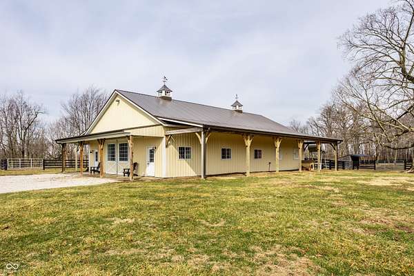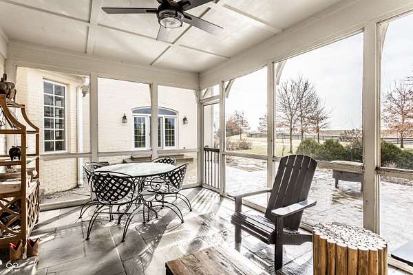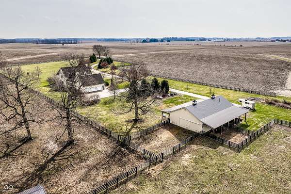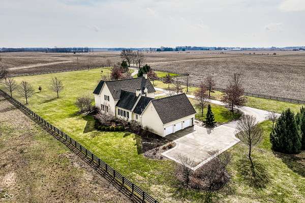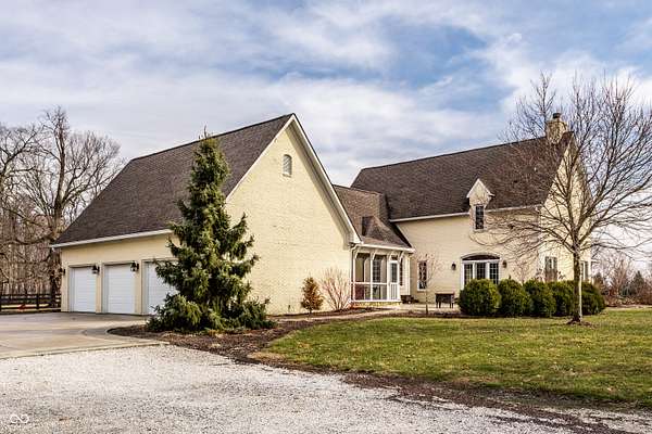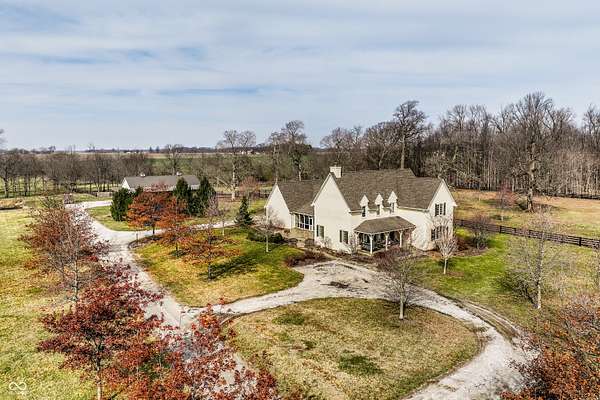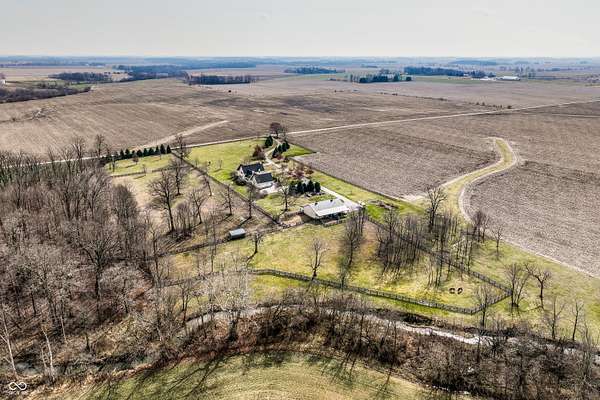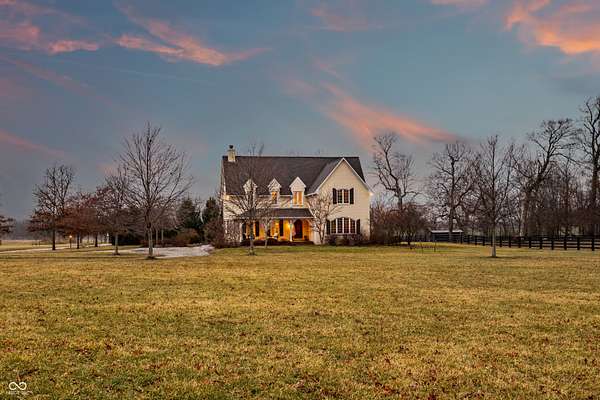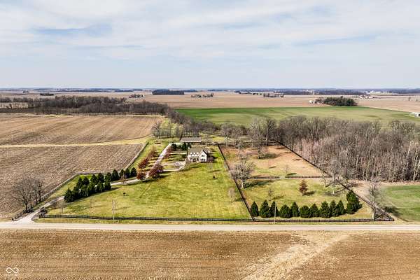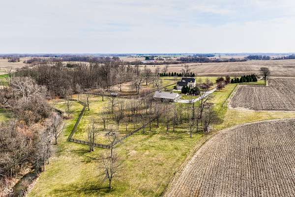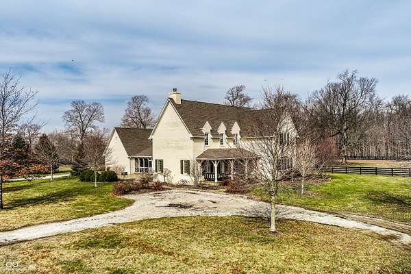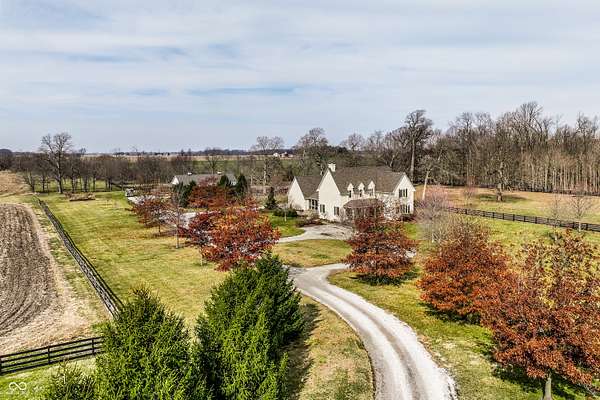 Gated, 28+ pristine acres, offers luxury living, privacy, and a true equestrian estate. Over 6,300 square feet of finished living space is perfectly designed for everyday comfort and grand-scale entertaining. This home offers 4 bedrooms, 6 baths, 3 fireplaces, a finished basement, and a flexible floor plan. Hearth Room with updated Stone fireplace w/gas starter, new wood ceiling; open to Kitchen with new island, and so many other updates. Custom home details include high ceilings, window seat nooks, a paneled den, hardwoods throughout, built-in cabinetry, custom trim, and abundant natural light. Outdoor living features a covered front porch, patio, and screened-in back porch which is perfect for relaxing or entertaining. Barn (40x64) provides wonderful equipment space, tack room, exercise room/office, half bath, two 12x12 horse stalls with an open bay for a third stall, plus a run-in shed offering additional shelter and pasture flexibility. The property provides outstanding accommodations for equestrian use, hobby farming, or the creation of a private retreat. It offers ample space for barns, arenas, paddocks, and pasture rotation, with the flexibility to design equestrian facilities separate from the home while maintaining privacy and convenience. Whether envisioned as a private horse estate, luxury country retreat, or legacy property, this offering is increasingly rare in today's market. Peacefully located yet within convenient reach of Lebanon, Zionsville, and the I-65 corridor, the estate delivers the best of rural tranquility with access to Central Indiana amenities. An extraordinary opportunity to own a true estate setting with space, privacy, and future flexibility.