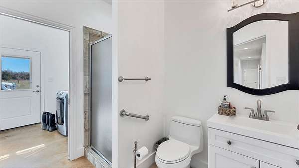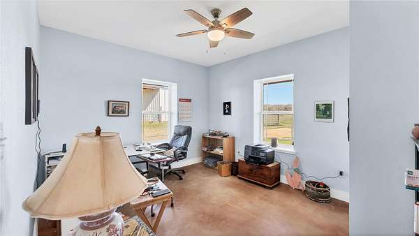 Mock Ranches is please to present this slice of paradise in the country! This 20 acre ranch with gentle slope, open space with selective tree cover. It boasts a charming 2 bedroom, 2 bath, 1500 sq. ft. all metal construction home built in 2020. This modern, move-in ready home features an open floor plan with a breakfast bar, concrete flooring, ceiling fans, and walk-in closets. Main-level laundry and accessible layout throughout. Utilities include central electric heating, public water, septic system, and electric water heater. Additional features include a 600?sq?ft insulated workshop, ideal for hobbies or equipment storage. 900 sq ft barn, and a 260 sq. ft. canopy supporting livestock, feed or gear. Whether its relaxed seclusion, or a gentleman's ranch, its ready to go! Convenient paved access via County Road?481, situation in Williamson County, located minutes from Thrall, and 20 minutes from Samsung.