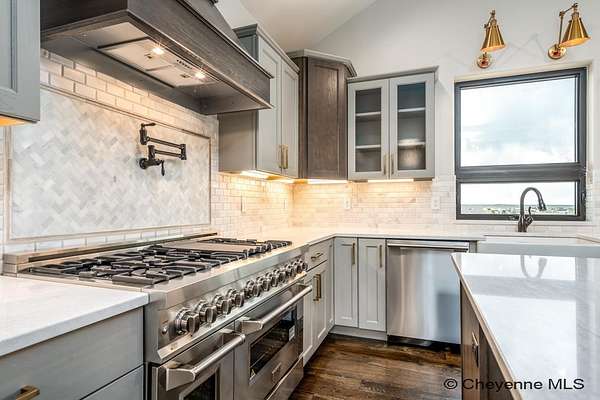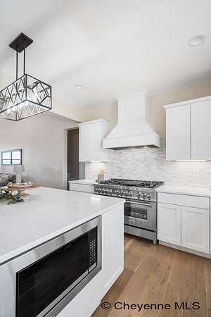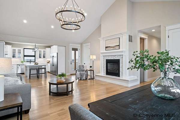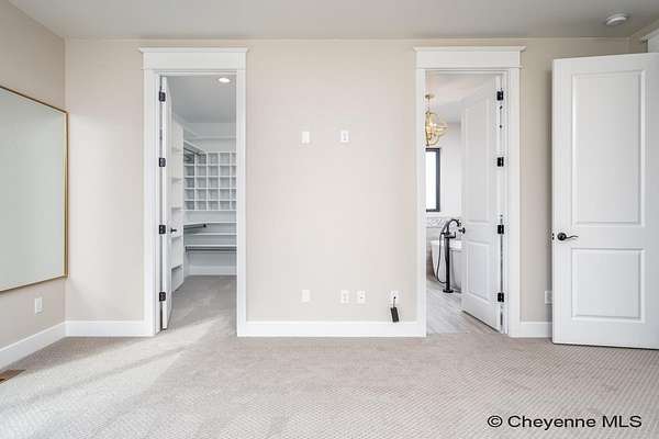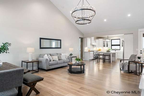 Luxury and craftsmanship converge in this masterpiece by Woods Brothers Construction. Meet the Greta - featuring three bedrooms, three baths, and a finished heated four-car garage, this home embodies refined living and timeless design. Airy cathedral ceilings, designer lighting, and effortless elegance prevail. The chef's kitchen anchors the home with a 48" gas range, double ovens, a 6-foot refrigerator/freezer, and an expansive pantry. This curated floor-plan is a true entertainer's haven. Upstairs, a versatile bonus room with 640 square feet of possibility; your own escape, for hobbies, workouts, gatherings, or uninterrupted productivity. The primary suite defines relaxation with a freestanding soaking tub, shower, custom closet, and private access to the covered deck for refined indoor-outdoor connection. The unfinished walk-out basement welcomes sunlight and possibility; the perfect space to expand, entertain, or simply enjoy. Imagine a vault room, wine cellar/tasting room, Superbowl Sunday with surround sound or your daily work-out in your personalized basement escape. Quality prevails throughout: 50-year shingles, 8-foot solid doors, energy-efficient windows, and WiFi-enabled insulated garage doors. Set in Lovely Bell Pasture, enjoy paved roads, fiber-optic internet, and panoramic Wyoming skies. A Woods Brother's Construction built home is where modern luxury meets lasting legacy.