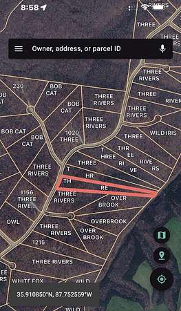 From Nashville, take I-40 West to exit 148, go right onto Duck River Rd (turns into Dyer Rd) approx. 4.5 mi to Three Rivers Estates gated entrance. Go down Three Rivers Drive to Bob Cat Ct, parcel begins just past that street on the left.