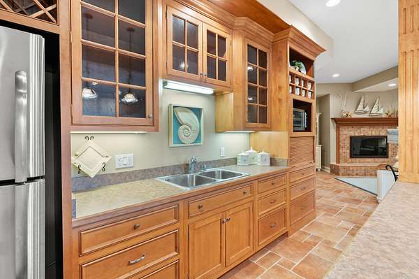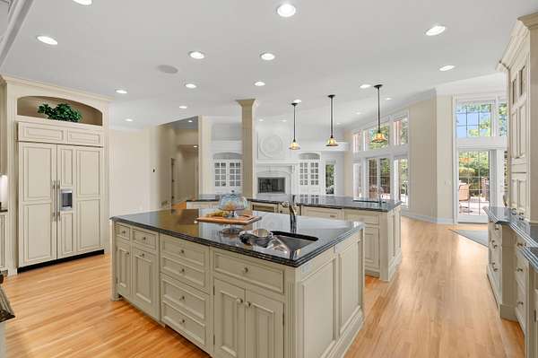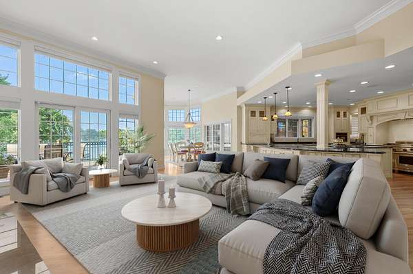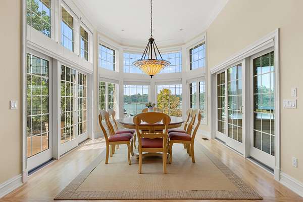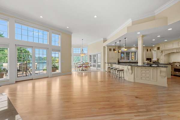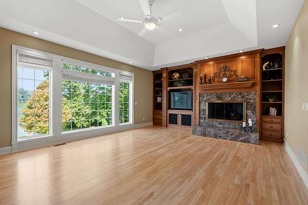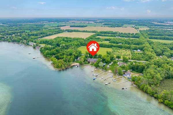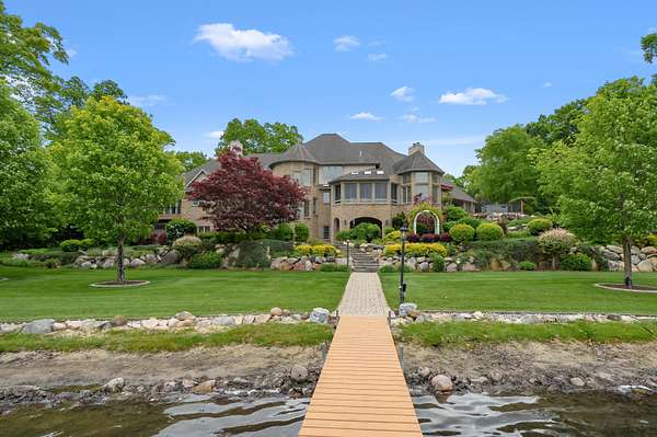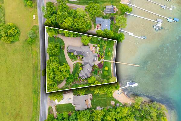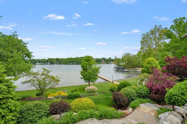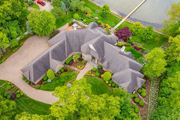 A Lakefront Legacy Estate - 225' Private Shoreline | 1.9 Acres | over 11,000 Total SQ FT of Custom Craftsmanship. Oriented for stunning lake views of All Sports Fishers Lake, this isn't just any home, this is lake living at its finest. The heart of the home features a custom chef's kitchen with a professional Wolf appliance suite, a dedicated butler's pantry and expansive granite surfaces, all open to the sun-drenched living room and dining atrium. Whether hosting an intimate gathering or summer gala, entertaining spaces abound. Enjoy cocktails al-fresco on the deck, catch the summer breeze off the water in the 3 season room, host an intimate dinner in the dining room or entertain a crowd in the walkout recreation hub with overflow to the park-like lakeside patio. The primary wing is an oversized sanctuary, complete with a private waterfront balcony, dual boutique walk-in closets, and a spa-inspired six-piece ensuite. Ensuring everyone enjoys total autonomy, three additional bedrooms three additional bedrooms each feature private ensuites. A dedicated executive office and expansive flexible spaces provide ample room for remote work, hobbies, or additional guest quarters. For those that value comfort, wellness and accessibility, the impressive infrastructure boasts three stunning fireplaces, radiant and forced air systems, advanced humidity control, reverse osmosis system, air purification system, security system, whole property Marantz sound system (extending to the beach), generator, wide halls, ramped entrance, and a 3-story elevator for effortless multi-generational access. Radiant floor heat in the 4 car garage and expansive boat garage will protect and pamper the finest collection and the shop gives options for varied pursuits. Outdoors, the gated circular drive with hand laid pavers offers ample additional parking and the professional landscaping is designed for ease of care and stunning color. It's time to spend your afternoons on the sundeck suspended over the water, your evenings by the lakeside fire pit, and your days enjoying the boating and fishing that Fishers Lake is known for. Your year round retreat awaits!
