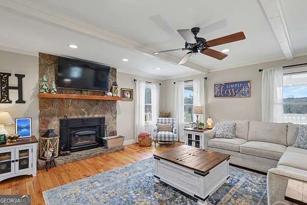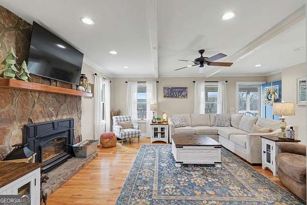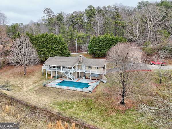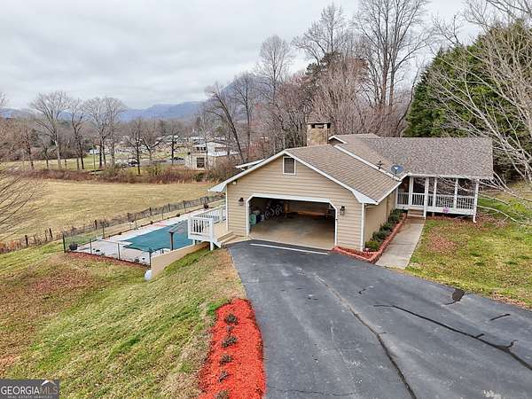 Perched on over 2 acres with mountain and valley views, this beautifully maintained 3-bedroom, 3.5-bath home offers the perfect blend of comfort, functionality, and outdoor living. Step inside to a bright and inviting interior featuring a living area with hardwood floors, abundant natural light and plenty of space for gathering with a wood burning fireplace. The spacious kitchen complete with gas range and stainless appliances flows seamlessly with the dining area. The primary suite provides a relaxing retreat with a spa-like bathroom complete with a jetted tub, dual vanities + makeup desk and a separate shower. An office space + two additional bedrooms and a full baths offer comfortable accommodations for family and guests, along with a convenient half bath for visitors. The basement offers additional sleeping quarters, a full bathroom, entertainment areas and additional storage options. Outdoor living truly shines here. The front screened in porch with wood burning fireplace offers year round enjoyment opportunity. The large partially covered back deck expands the length of the home with access from the master suite as well as other living areas plus the in-ground pool with surrounding patio creates the ultimate backyard oasis, all set against stunning views. Whether entertaining or unwinding, this space is designed to impress. For hobbyists, business owners, or outdoor enthusiasts, the property features a dedicated 20 x 24 -2 story workshop with roll up door, open room on top with a bathroom, laundry capabilities and ample storage. In addition to that the property offers a 2,400 sq ft heated metal building with a bathroom, 3 bays and a 11,000lb 2 post lift offering ample room for vehicles, equipment, and projects, a small barn with a chicken coop, 7500 KW generator, RV shed with plug and septic drain, a 2 car attached garage and a carport shed. If you're looking for usable acreage, incredible views and exceptional storage space-all within a serene mountain setting-this property checks every box. Schedule your showing today and experience it for yourself.