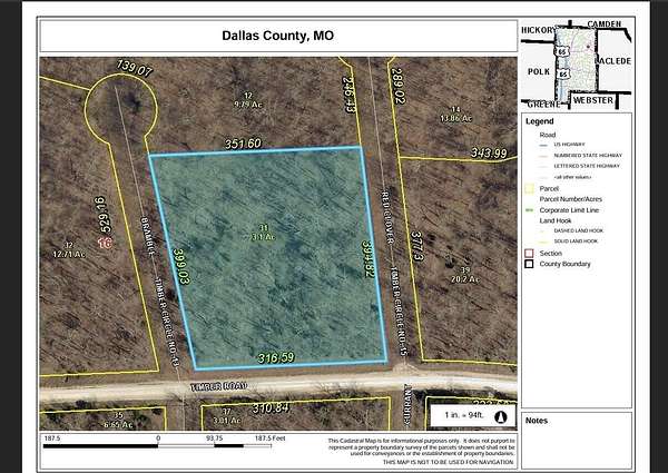 From Buffalo and Lebanon. Take 64 Highway toward Leadmine Road in Tunas. Turn onto Leadmine Road. The turn left onto Timber, turn left at the Y. The property is down on the right.