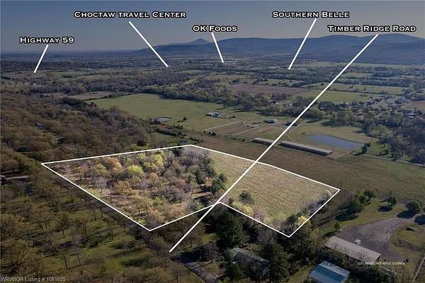 Go west out of Heavener. Turn north on Timber Ridge Rd and property is on the right.