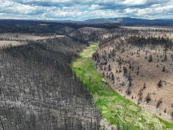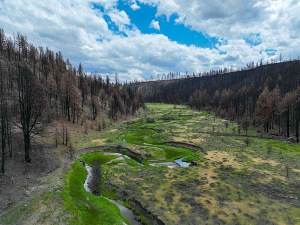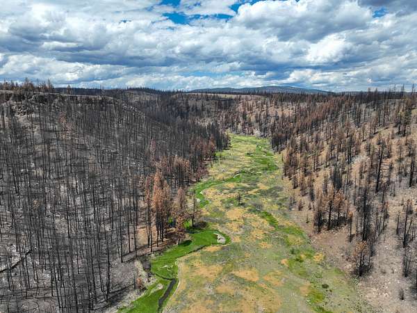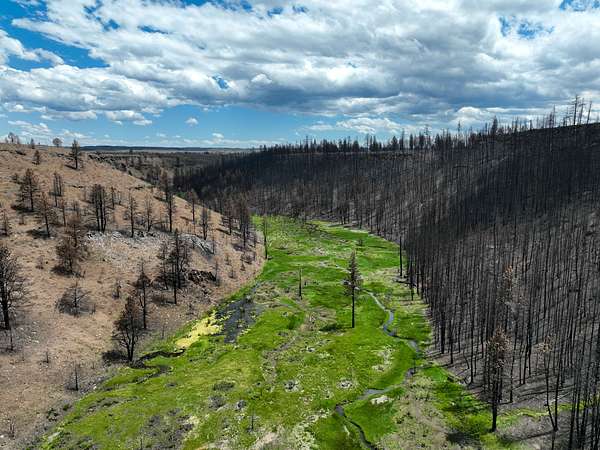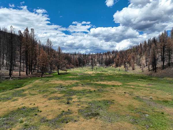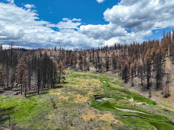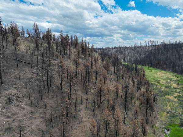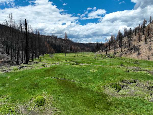 This Eastern Oregon recreational property is located approximately 5.3 miles south of Yellowjacket Lake along Forest Service Road 3745. The 320 total deeded acres includes 0.71 miles of year-round Yellowjacket Creek, which winds through lush green meadows nestled in the valley floor. The terrain then rises about 300 feet on either side of the creek, leading to relatively flat ground on top.