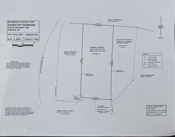 From Humboldt, TN, US Hwy 45 Bypass to Hwy 79 N to Gibson, TN. Left at traffic light in Gibson onto N Main Street past St Rt 420 continuing to St Rt 186 N. Property is immediately north of Parkers Chapel Church located at 30 St Rt 186 N.