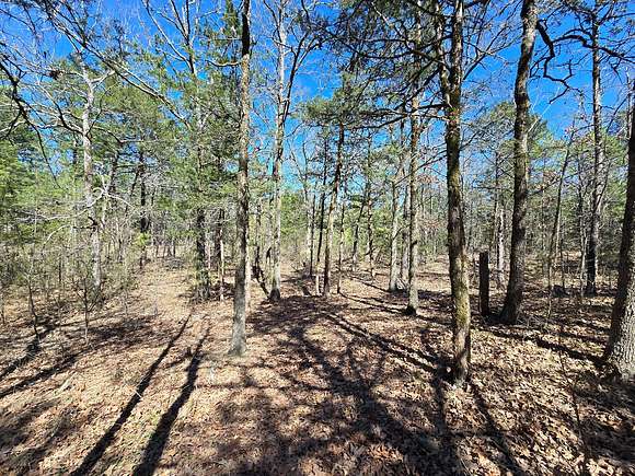 Land: The 3 acres of land has been surveyed with all property corners marked and the property lines flagged. The land is covered with a nice stand of mature timber that is native to south-eastern Oklahoma. The North property line has frontage along a good county maintained dirt road (Lenox Loop). There is a nice elevated building spot near the center of the property that would be a good location for building a cabin or small home.