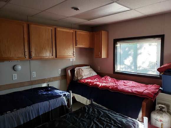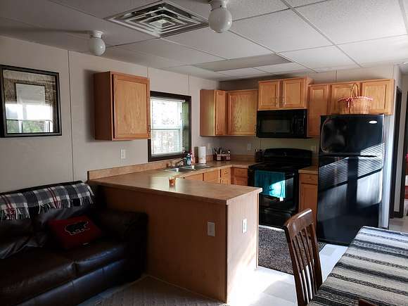 Off-Grid Cabin: There is a 13.5 feet wide x 58 feet long cabin on the property with approximately 785 square feet of heated and cooled living space. There are 3 Bedrooms, 1-1/2 Bathrooms, laundry room and large kitchen/living room area. The cabin has a low maintenance metal exterior, energy efficient vinyl windows and is completely wired to an electrical junction box where a generator can be plugged in to power the cabin. The cabin has a central heating and air conditioning unit and connections for well water and sewer. The cabin comes with all the appliances and most of the furniture shown in the pictures.