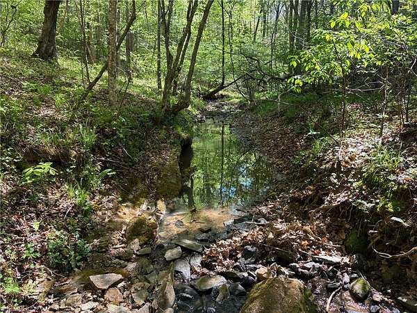 Est $690/moTucked away in northern Stokes County just minutes from the Virginia line, this distinctive 9.9-acre tract offers a rare blend of privacy and natural character. Positioned approximately 240 feet off Tom Mix Road and accessed by a 30' roadway, the property welcomes you with mature timber and gently rolling terrain. A beautiful stream defines the southern boundary, featuring rock ledges and clear pools that create a truly tranquil setting. Shown by appointment only.