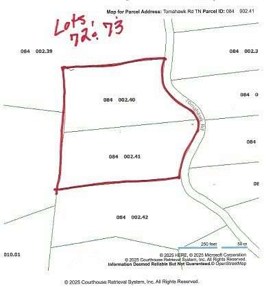 14.34 surveyed ac located approx 1000 to 1300 elevation giving this lot a lovely stare of mtn views & the valley for miles. Easy access off a private road onto an Improved driveway, modest restrictions, Electric - telephone - Internet & Fiber Optics is available from the road, loads of wildlife, loads of privacy, mature timber in the wooded area & loads of fresh air. Building site has been improved and could be expanded to be larger. Historical records show this tract of land and surrounding it was owned by Mark Twain and his family. Approx 15 miles from East Port Marina on Dale Hollow Lake. Approx 8 miles from Jamestown, TN. For shopping and restaurants. Ideal tract for that dream home or retirement home. 2 lots: Lot 72 & Lot 73. Seller will sell each lot separately. Buyer to do own due diligence & pertinent information.