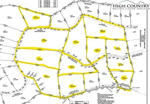 Est $424/moBeautiful building site on this 4.81+/- acre lot with gorgeous long range mountain views located in the Laurel Mountain Estates subdivision. The terrain is sloping and mostly wooded. Nice knoll for building your dream cabin! This lot has road frontage on Toms Knob Rd, which gives you the great views, but also you can access the lower part of the lot from Forest Hill Drive. Laurel Mountain Estates is a well established subdivision centrally located between the quaint towns of Sparta and Jefferson, each offering shopping, restaurants, parks, hospital and much more. Call today to see this one!