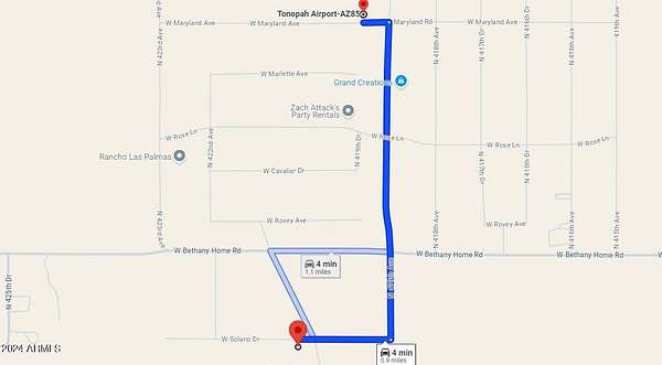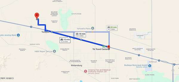 From Phoenix head west on I-10hwy, Take exit 94 toward Tonopah, Head North on 411th Ave to Camelback, then head west to 419th Ave, then head North to Solano Drive.