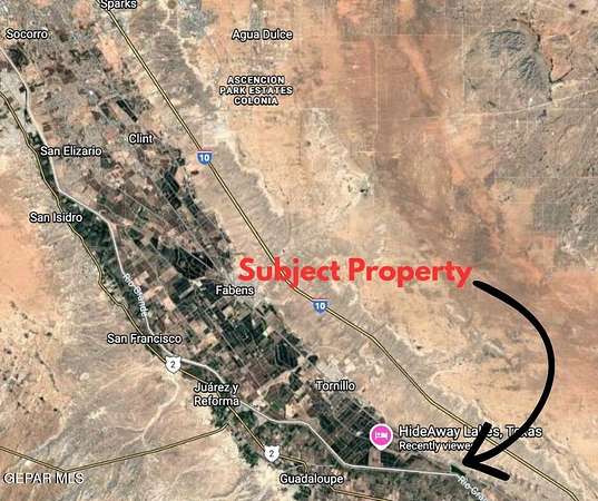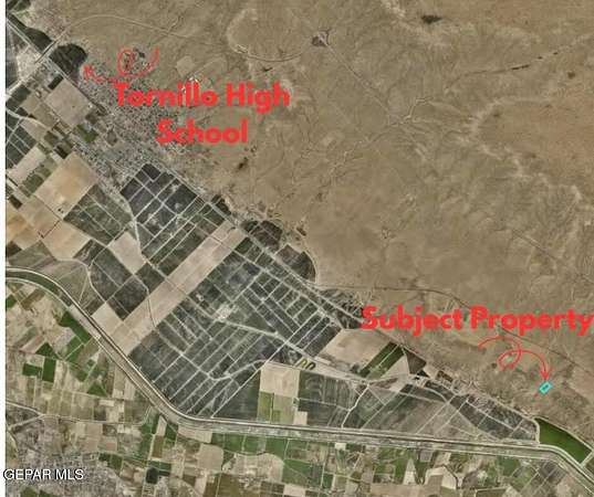 Est $327/moThis is a 5-acre lot located in the expanding community of Tornillo, Texas. The property offers a rural setting with open space and wide vistas. It is approximately 3 miles from Tornillo High School, 2.5 miles from State Highway 20, and about 7 miles from Interstate 10, providing convenient access to El Paso and surrounding areas. The lot is also near the Tornillo-Guadalupe International Bridge, offering regional connectivity. Its size and location make it a flexible option for buyers interested in land in this growing part of the county.