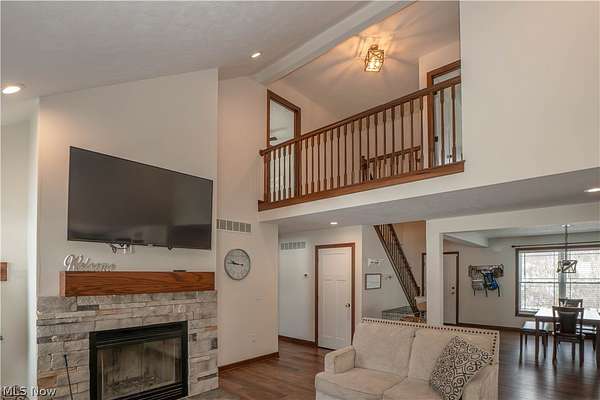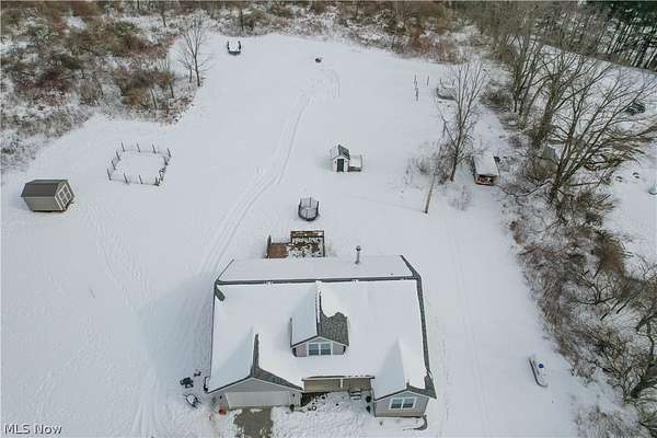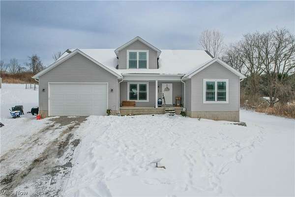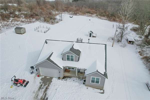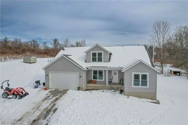 Designed with everyday family life in mind, this newer 4-bedroom, 3-bath home offers space, comfort, and room to grow on nearly 12 peaceful acres. Built in 2022, the open-concept main level is warm and welcoming with high ceilings, a cozy wood-burning fireplace, and sightlines that make it easy to stay connected whether you're cooking or relaxing. The heart of the home is the spacious eat-in kitchen featuring a large island with seating, pantry storage, and direct access to the back deck-perfect for family meals, playtime outside, and entertaining. Two first-floor bedrooms include a private primary suite with walk-in closet and dual-sink bath, offering flexibility for young families or multigenerational living. A main-level laundry room, bonus flex space ideal for a playroom or home office. Upstairs, two additional bedrooms and a full bath provide plenty of space for kids, guests, or growing needs, and an unfinished basement ready for future expansion add to the home's practicality. Outside, enjoy wide-open land for kids to roam, pets to play, and endless outdoor possibilities, along with a front porch, enclosed back deck, attached two-car garage, and storage shed. A rare blend of modern comfort, thoughtful layout, and room for family memories to grow-this one truly checks all the boxes.