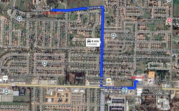 West on 102 Hwy from Bentonville, Right on Tater Black Rd, Left on Town Vu Rd to Sign on right. Location Guidance: Please use GPS navigation for 4508 Town Vu Road, Bentonville, AR 72712 to reach the property accurately.