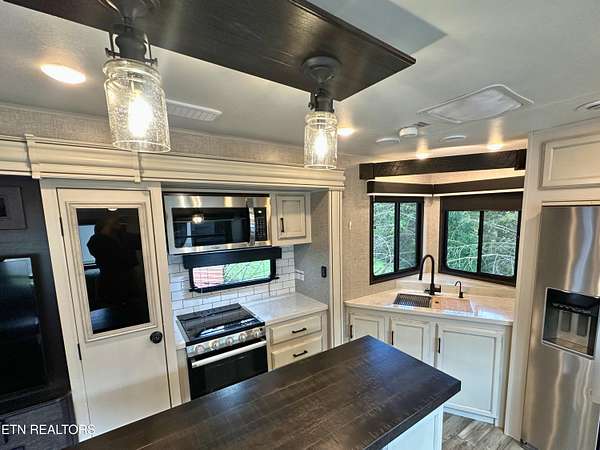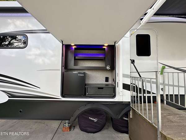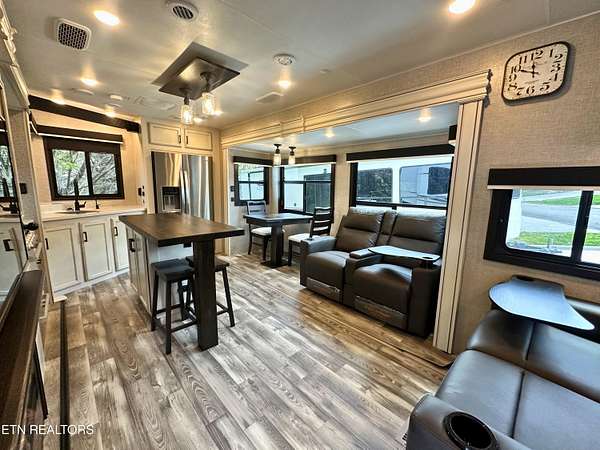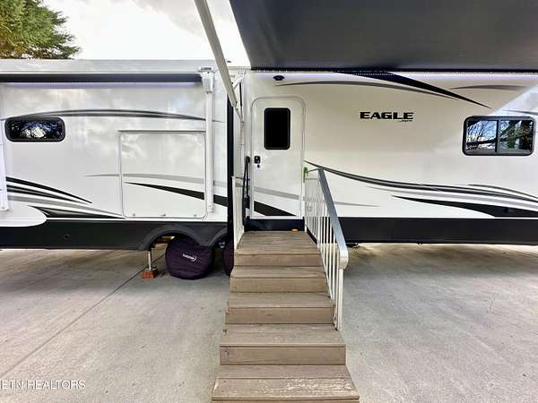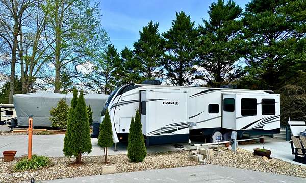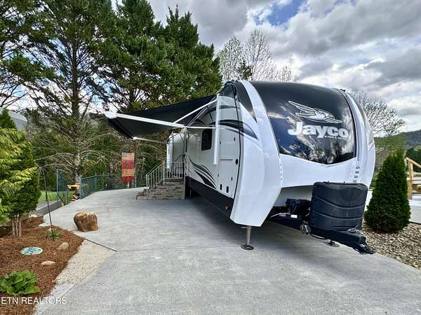 Lot 162 in Sundown Resort offers an exceptional opportunity to enjoy a well-appointed Smoky Mountain retreat in the heart of Townsend, known as the peaceful side of the Smokies, located just one mile from the entrance to the Great Smoky Mountains National Park. This property includes a Jayco Eagle 332CBOK travel trailer, an approximately 40-foot unit with three slide-outs designed for comfortable extended stays, and the RV may convey with an acceptable offer. It features a residential-style rear kitchen, large refrigerator, generous pantry storage, and a king bed suite with a recently purchased mattress that has been slept on only once. The camper shows like new and reflects minimal use, presenting in near-pristine condition. It is thoughtfully equipped with desirable upgrades including an RV cover and tire covers, self-leveling capability, a central control panel for streamlined operation, on-demand hot water, and a full-size shower, along with a filtered water system supplying drinking water directly to the sink, refrigerator, and ice maker. An integrated JBL sound system with three distinct audio zones sets the tone for both relaxing evenings and effortless entertaining, while the outdoor kitchen adds an extra layer of convenience and enjoyment to your mountain getaway. Sundown Resort is a gated community offering a welcoming atmosphere with amenities including swimming pools, playgrounds, bathhouses, basketball and pickleball courts, and gathering spaces for community events. HOA coverage typically includes water, electricity, cable, internet, and grounds maintenance, allowing for a truly low-maintenance, lock-and-leave lifestyle. Ideally positioned near the Little River and just a short drive to Maryville, Knoxville, McGhee Tyson Airport, and the attractions of Pigeon Forge and Gatlinburg, this location offers the perfect balance of peaceful retreat and everyday convenience. A generator is required for use from November through March. This is a rare opportunity to own a turn-key mountain escape that is as effortless as it is enjoyable. Buyer to verify all information.