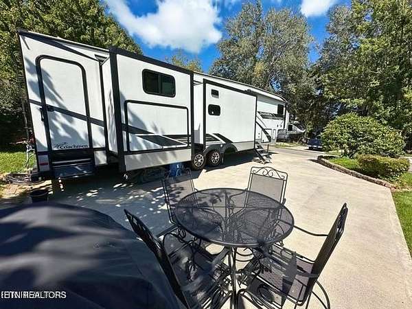 Welcome to Lot 94 in the gated Sundown Resort in Townsend, TN--where Smoky Mountain charm meets turnkey luxury living. Conveying with the sale of the lot is a 2021 Coachmen by Forest River Chaparral Series M-367-BH, a spacious fifth-wheel that has only been towed from the dealership. Designed for comfort and flexibility, This immaculate RV features two true bedrooms and two full baths**, offering exceptional comfort and privacy. The private master suite includes a queen bed, while a rare four-person bunkhouse provides flexible accommodations. Notably, only the queen bed and sleeper sofa in the bunkhouse have been used -- the remaining sleeping areas are untouched. The inviting interior offers a cozy electric fireplace, theatre seating, a tri-fold sleeper sofa, and entertainment center, while the well-appointed kitchen includes a residential refrigerator, solid-surface countertops, and ample cabinetry creating a home-like atmosphere. Meticulously maintained by non-smoking owners with no pets and no children, this RV feels fresh, clean, and gently lived in. Outdoor living is just as impressive, featuring a built-in outdoor kitchen, outdoor shower, grill, chairs, everything you need to relax or entertain. An outdoor camper cover also conveys, protecting your investment year-round. The level concrete pad provides a perfect setup surrounded by peaceful mountain scenery. Sundown Resort offers outstanding amenities, including two swimming pools, playgrounds, basketball and pickleball courts, bathhouses, and an activity barn with year-round events. HOA dues conveniently cover power, water, cable, internet, lawn care, and trash, making this a low-maintenance getaway. Located just 1 mile from the Great Smoky Mountains National Park and a short drive to Gatlinburg, Pigeon Forge, Sevierville, and Maryville, this property offers the perfect blend of privacy, convenience, and adventure. Seasonal Note: A generator is required from late November through late March as Resort as power, water, and amenities are turned off. Owners may still use their property year-round. Buyer to verify all information.