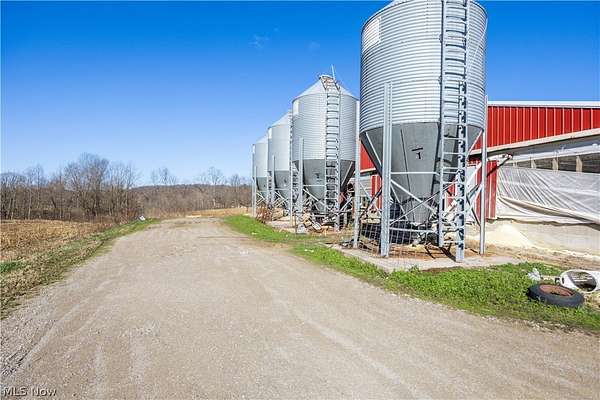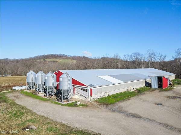 Swine production facility situated on 3.278 acres along Township Rd 121 near Newcomerstown in Coshocton County. The primary barn measures 80' x 240' with an additional 12' x 30' lean-to (19,560 Sq Ft), offering a maximum head capacity of up to 2,368 head. The barn built in 2006 features a slatted floor with an under-barn manure pit that is filled approximately one and a half times per year. Recent updates include replacement of select roof metal panels and a new center curtain. Pens are currently configured with varying sizes but can be rearranged to suit an operator's preferred layout. The facility is equipped with a fully computerized feed system with augers, tunnel ventilation, exhaust pit fans, and propane heat. The barn has its own designated water well and is serviced by two separate electrical breaker boxes. This property is being offered without any production contract, allowing a buyer to operate independently and customize the facility to their specific operation or management style. This parcel will be given an ingress/egress easement to be accessed from the existing driveway off of TR 121.