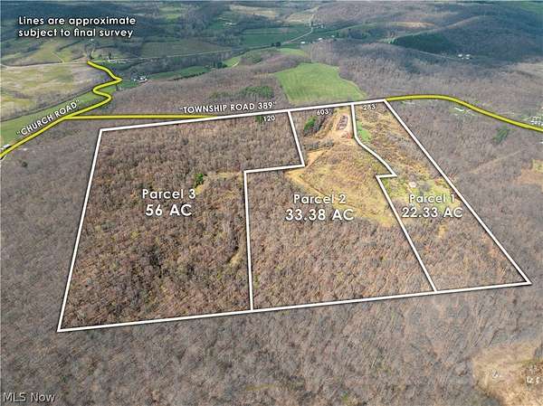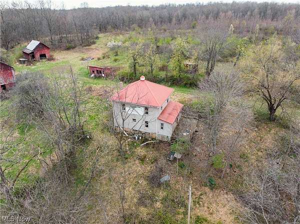 Onsite Live Auction, Tuesday, May 26th at 6:00 PM. Nestled in the SW corner of Coshocton County sits this 111-acre getaway. Located on a secluded township rd. Opportunity at affordable recreational land with a lot of possibilities of turning it into a great getaway property. Food plot potential and several excellent locations for an elevated hunting blinds. Parcel 1 (22.33 Acres w/house + outbuildings): 283' Frontage. Older 3-bedroom, 2-bath farmhouse with a metal roof and mostly replacement windows. It needs some TLC but has "plenty of life left" as a weekend getaway or fixer-upper project. Includes 3 additional older barns/sheds for storage, workshops, or animals. Parcel 2 (33.37 acres): 603' Frontage. Shared 80' Access. Blend of woods and open land, plus a dried-up 1-acre pond. Features a 36x54 pole building with 2 overhead doors - great for equipment and hunting storage. Terrain is easily accessible. Parcel 3 (56 acres): All wooded with a young tree growth, rolling terrain, and good deer sign. 120' road frontage with easy access right from the road. Pure recreational setup, ideal for hunting, or future timber management.
