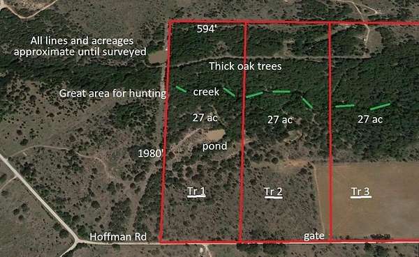 Est $1,759/moEscape to the country on this executional recreational land. Fabulous hunting and ATVing with a number of great locations to build. Big beautiful oak trees in the creek area is the perfect setting for wildlife to gather. Endless peace and quiet and a roughly an 1:35 minute drive from Fort Worth, 45 minutes to Possum Kingdom Lake. Fenced on 3 sides. No temporary structures are allowed.