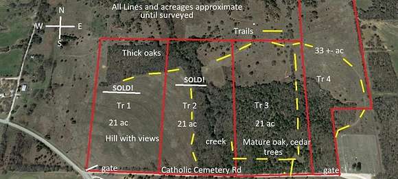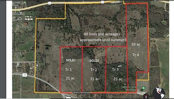 From Montague go east on FM 455 to left on Catholic Cemetery. Tracts of land are on left all the way to the cemetery.