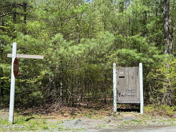 Lakefront dream land in Dingmans Ferry. Discover 5.6 pristine acres in the sought-after Traces of Lattimore POA. With significant road frontage, the land starts with a level profile high above the water, then gently slopes to a woodland plateau, ideal for building your lakeview retreat. The land then drops down to the level of the lake. A variety of trails make exploring this parcel easy to do. Enjoy sunlight filtering through the trees, stunning lake views, and direct access to Lattimore Lake. Experience secluded tranquility just 15 minutes from Milford Borough and the Delaware River.