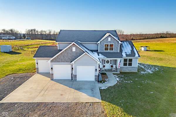 RARE FIND!! DON'T MISS OUT ON THIS NEARLY 14-ACRE GORGEOUS PROPERTY IN SOUTHERN JOHNSON COUNTY in INDIAN CREEK SCHOOLS! Built in 2018 - 4 Bedroom, 3 1/2 bath, 3-CAR-GARAGE, over 3,000 sq ft BEAUTIFUL HOME. A little over 6 ACRES of FENCED ORGANIC PASTURE! Even plenty of room for your POLE BARN! As you enter this STUNNING HOME, you will walk into so much WARMTH, yet wonderful TALL CEILINGS and OPENESS that is PERFECT for ENTERTAINING! The family room, kitchen and master suite look over the property where you we see the BEST COUNTRY SUNSETS. The kitchen boasts GRANITE COUNTERTOPS, STAINLESS STEEL APPLIANCES, BREAKFAST BAR, and a WALK-IN PANTRY! Eat dinner at your table, and watch the animals and nature play in the back yard. BEAUTIFUL HARDWOOD LUXURY VINYL PLANK flooring throughout! The MASTER SUITE is on the MAIN FLOOR with double vanity and FULL walk-in SHOWER. The DEN/OFFICE on the main floor is currently being used as a 5th bedroom. TWO of the THREE BEDROOMS UPSTAIRS have their OWN BATHROOM! Need more space...the HUGE LOFT is great FLEX SPACE for a REC ROOM, GUEST ROOM, ETC.! As you venture outside, the ACTIVITES ARE LIMITLESS! HOMESTEADING, HOBBY FARM, QUAD RIDING, HORSES, CHICKENS, GARDENING, and the LIST GOES ON! Less than 10 minutes to SCHOOL, 20 minutes to Franklin, 30 minutes to Columbus and Nashville, 45 minutes to downtown Indy.