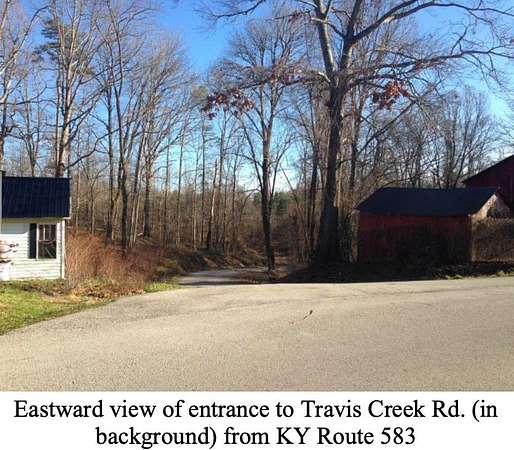 From the intersection of KY-9006/Hal Rogers Parkway & US-421, take US-421, Turn right onto US-421 N, 23.0 mi, Turn right onto KY-1071 E, 2.4 mi, Continue straight onto KY-3445 E, 2.3 mi, Continue onto KY-587 N, 390 ft, Turn right onto Travis Creek Rd, 1.7 mi