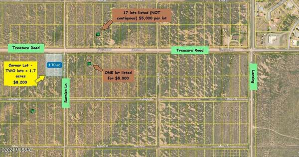 Corner Lot on a county maintained road. 1.70 AC (two tax parcels) located less than a 1/2 from Sunsites. Super easy access on a 50' wide dirt road. All level and usable. It's a great price considering the location and views. The south side This lot is located in Unit 4 which is desirable for its westerly views of Cochise Stronghold; the Dragoon Mtns and easterly views of the Chiricahua Mtns in the distance. It is a little cooler at 4200' elevation - located in the high desert grasslands with an abundance of wildlife and birds; natural cacti and a few spotted mesquites. Only 2 minutes to the Village of Sunsites, and about an hour to Tucson. Buy as an investment or develop into a great home site! Listing agent is related to the seller. The seller is a licensed real estate agent in AZ The south side is the best because there will be less dust. We have SE prevailing winds.