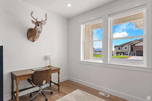 Beautifully designed custom home on 1.59 acres. This thoughtfully crafted home features 4 bedrooms, 2.5 bathrooms, a designated office, a spacious bonus room with its own HVAC system, a large storage room, and an oversized 4-car garage complete with a utility sink. High-end upgrades are found throughout, including custom white oak cabinetry, quartz countertops, steam oven, and luxury vinyl plank flooring. The master bathroom offers a luxurious retreat, while the natural stone fireplace creates a stunning centerpiece in the living area. The exterior showcases natural stone and Hardie siding for a timeless look. Enjoy outdoor living on the covered back patio with a built-in gas fire pit, or take advantage of the large yard with space for entertaining and potential horse property. A south-facing driveway ensures convenient winter maintenance. Schedule your showing today and experience all this home has to offer. Square footage and acreage figures are provided as a courtesy estimate only. Buyer is advised to obtain independent measurement.