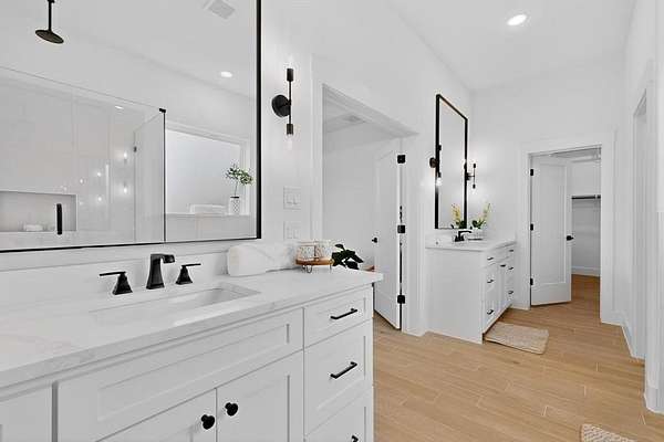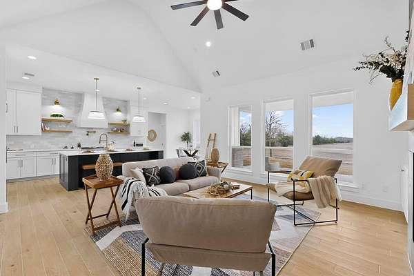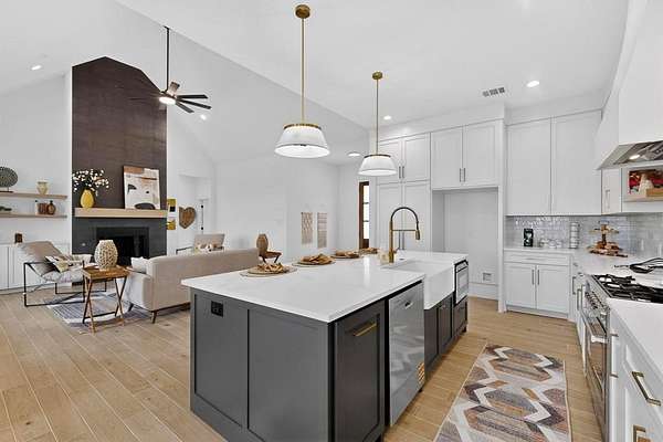Step inside and you're welcomed by a bright open-concept interior designed for real life. The living room flows effortlessly into the kitchen and dining area, making it easy to stay connected while meals are prepared or homework is happening at the table. The kitchen blends modern style with farmhouse warmth--clean lines, generous workspace, and an inviting layout that naturally becomes the heart of the home.