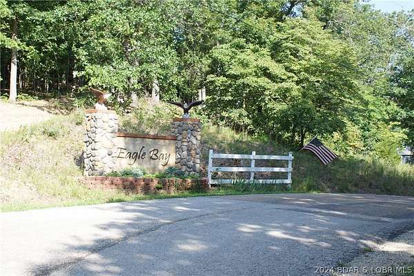 Here is one of the best kept secrets of Lake of the Ozarks. Eagle Bay is a beautiful community with incredible views, Paved roads throughout, park-like setting, water/sewer to every lot. This part of the lake is very quiet and peaceful, just 20 minutes from Laurie & up the 135 sits a lot with 231 feet of Lakefront. The panoramic view, large cove location, serenity and beauty is what makes this lot so inviting. A home with a lower-level walkout would be prefect for this location, lot can be made to have easy accesses to the lake and a concrete path for a golf cart to the water's edge would be a great way to your own private boat dock. A development. like this, on the quiet side of the Lake, is very hard to find. This lot and community is a must see, you will be amazed how wonderful this location is with its great views of the Lake. All Utility hook up and improvement fees are $2500.00 at the start of developing lot. HOA fee with a home is 700.00 a year and just the lot is 250.00 a year.