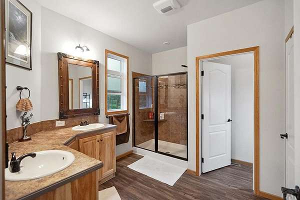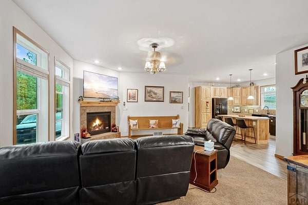 High-End 2017 BonnaVilla Modular Home with Premium Upgrades & Oversized Shop. Where thoughtful design, energy efficiency, and luxury finishes come together in perfect harmony. Built with superior construction and loaded with high-end features, this 3-bedroom, 2-bath residence is the ultimate blend of modern living and practical functionality. Immediately feel the difference: 9-foot ceilings with transom windows create an expansive, sun-filled living space. The open-concept layout is anchored by a custom kitchen, complete with soft-close cabinetry, a large center island, wet bar, and an oversized walk-in pantry-ideal for both entertaining and everyday living. The living area features a gas fireplace with blower, and the spacious primary suite includes a luxurious walk-in shower and generous storage. This home boasts 2x6 walls with R-30 insulation, a ceiling rated at R-52, and central heating throughout. Enclosed Crawlspace/Basement The entire home sits above a fully enclosed 4-foot-high basement with ducted heat and return air, keeping the space at a consistent temperature with the main home. A radon mitigation system, cistern pump and pressure tank, electrical outlets, lighting, and a junction box with a capped 3" conduit ready for a future generator. Equipped with a 400 Amp main panel. split into: 200 Amp sub-panel inside the home. 200 Amp feed running to the permitted 1,800 sq. ft. garage/shop with water and septic run to it as well. Add an apartment if desired.