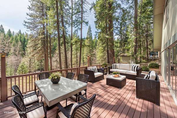 Stunning Creekside Retreat on 5 acres, with great room, loft & massive deck over looking the creek, this 1,148 sf home, offers a large downstairs bedroom and bath room, the great room features a warming woodstove, an open floor plan and an versatile loft that would be a great second bedroom or office space, the great room also has a oversized sliding glass door and large windows throughout that flood the space with natural light. Step out onto the massive deck and soak up the serene views of the creek , it's your own private oasis, ideal for entertaining, relaxing or just listen to water flow. There are two separate legal parcels being sold together, both have the creek frontage, the vacant parcel also has community water to it. The interior of the home was painted in 2024, the HVAC syste St is newer, the home is generator ready and features a transfer switch so no need to worry about a power outage. Property is 3 miles to Trinity Lake and to trails in to Trinity Wilderness lands.