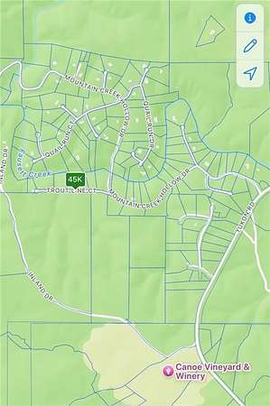 This 1.44-acre mountain homesite is ideally positioned above a wide, flowing creek bed, offering year-round mountain views and the peaceful sound of moving water just beyond the back of the property. From the lot, you can hear the creek as it winds through the landscape below, creating a natural soundtrack that enhances the sense of privacy and calm. Located within the gated community of Mountain Creek Hollow, this property offers a rare opportunity to build a custom mountain retreat surrounded by nature. Community amenities include a creek-side pavilion with fireplace and picnic tables, underground utilities, a covered bridge, stocked trout pond, community garden, water wheel, and walking paths designed to enjoy the natural setting. Faucet Creek flows along the lower portion of the property, widening in areas and featuring small, picturesque waterfalls that add to the property's character. The setting feels secluded and tranquil, yet remains convenient-just over ten minutes from shopping and dining in Ellijay and ideally situated between Ellijay and Jasper. This lot offers a balance of natural beauty, community features, and accessibility, making it well-suited for a primary residence or mountain getaway. Please note, the HOA does not currently permit short-term rentals. Gated access required to visit this community. Survey has been completed and a home rendering available.