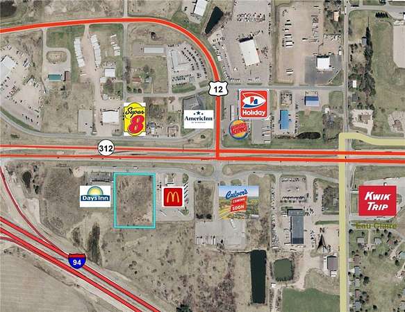 Est $3,424/moDevelopment opportunity on 3.63 acres next to McDonalds. Extremely convenient location at exit 59, with excellent visibility from I-94, Hwy 312, & Hwy 12. Near by business: Days Inn, Super 8, Americinn, McDonalds, Burger King, Holiday, Kwik Trip, Menards Corporate & Distribution, future Culver's, & over a dozen other businesses. Less than a mile away dozens of new multi-family units are being built and 100's of existing residential properties already built. Property is zoned C3. Additional land available.