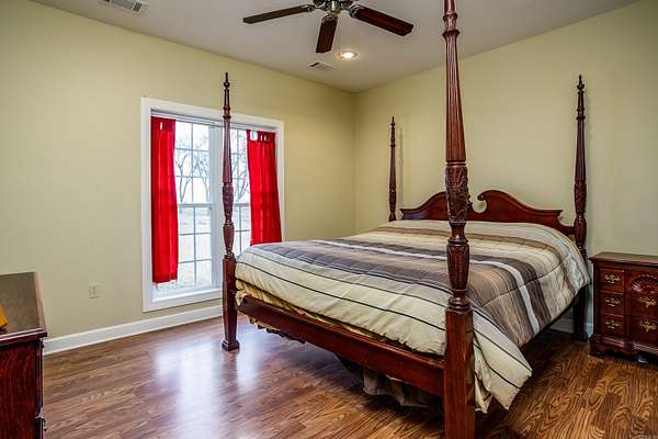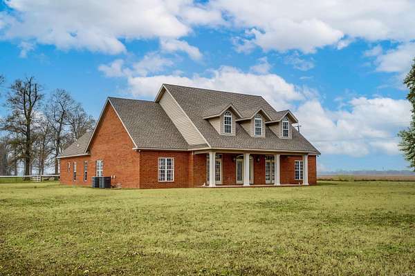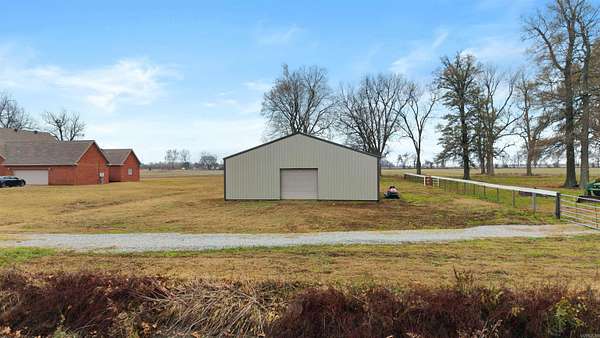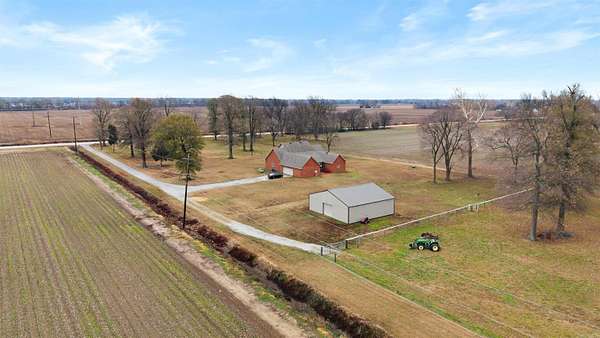 Welcome to your private country retreat! This beautiful 3,238 sq ft home sits on 7.73 acres with majestic oak trees. The spacious layout offers 3 bedrooms, an office, a formal dining room, and a large bonus room, along with an indoor safe room/tornado shelter for peace of mind. The heart of the home is the roomy kitchen, featuring an island and cozy breakfast nook, perfect for gathering with family and friends. Step outside to enjoy the screened patio overlooking the serene property. Equestrians and hobbyists will love the 40x40 metal shop with a concrete floor, electricity, and roll-top door, plus the 3-stall horse barn with a tack room and corral. The oversized 2-car garage is ideal for longer vehicles and includes an adjacent storage room with attic stairs and a huge storage area above the garage, completing this exceptional property. Country living at its finest! The property is located 1.5 miles from I-555, with just a 27-minute drive to Jonesboro and a 45-minute drive to Memphis.