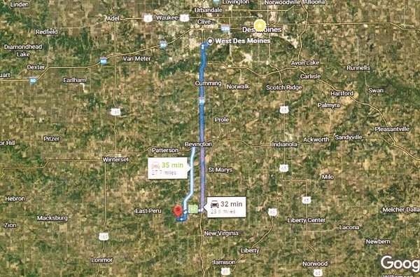 I-35 south to St. Charles exit go west into town. Stop 4-way by white church go south and land on right hand side 3 miles. Or take Truro exit go west about 3 miles and land is on the corner to the right.