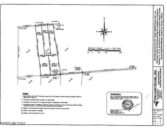 Est $440/moEscape to the pristine beauty of Tubac Foothills Ranch with this remarkable 37-acre vacant lot. Situated in a tranquil and naturally captivating landscape, this property offers an exceptional opportunity to own a piece of the untouched desert terrain. The expansive lot, brimming with wide-open desert views, awaits your vision and creativity to craft the perfect desert retreat. Property can be divided into five lots. Please see attached photo showing the 5 splits - the survey just needs to be recorded.