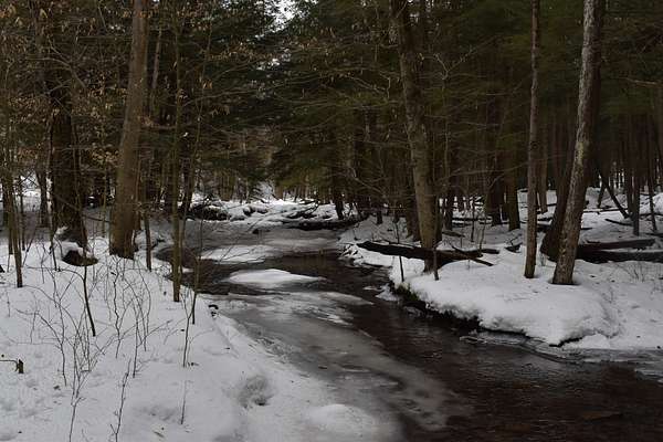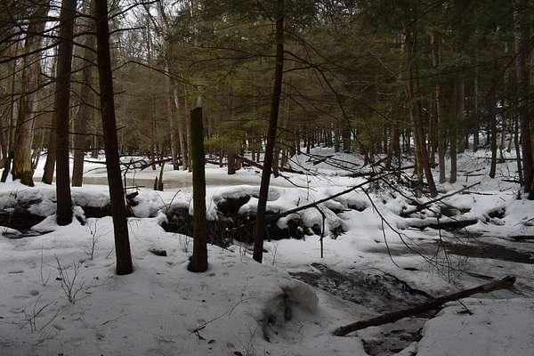 Hosmer Run is a full-time flowing stream that runs full length through the property. Toward the west end some beaver have moved in and dammed up a section of the stream creating a larger pond area. This is a beautiful area, lined largely in hemlock along the stream making for a very scenic spot on the property. Internal trails provide easy access to the stream.