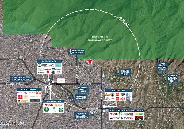 Skyline/Alvernon Way N. to top and Summit at Finger Rock Gate. E. on Playa De Coronado to signs. Call for Gate Code.