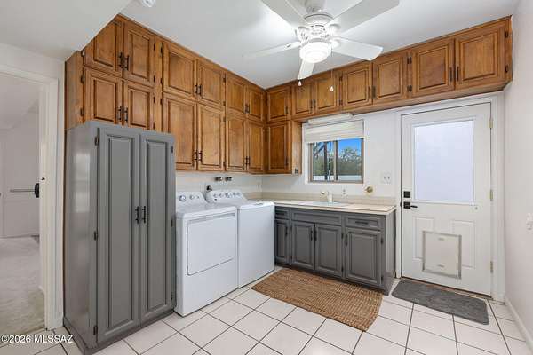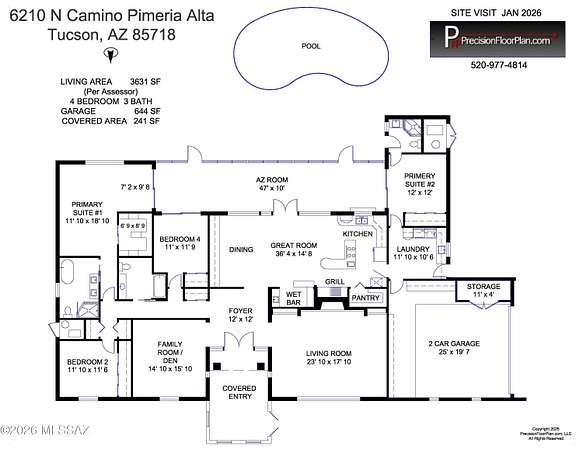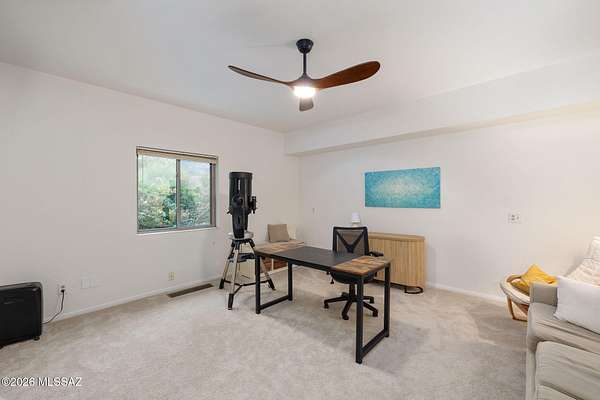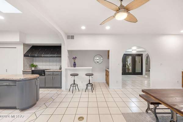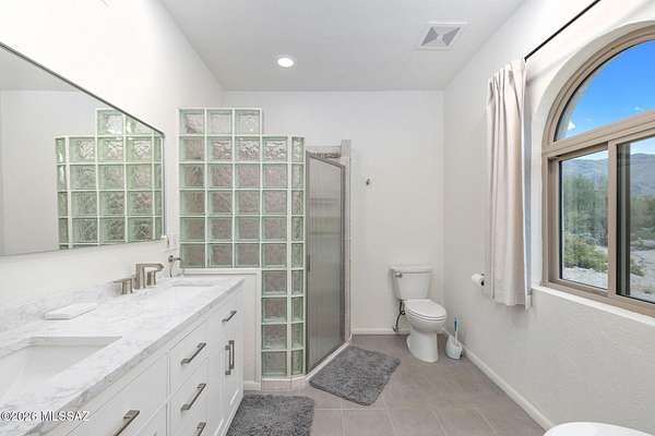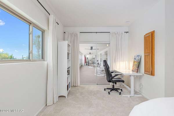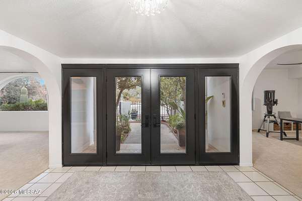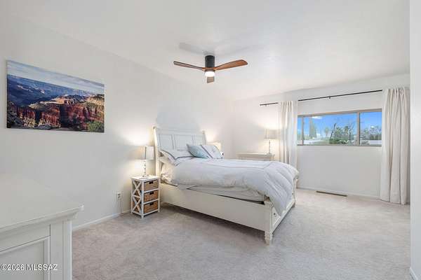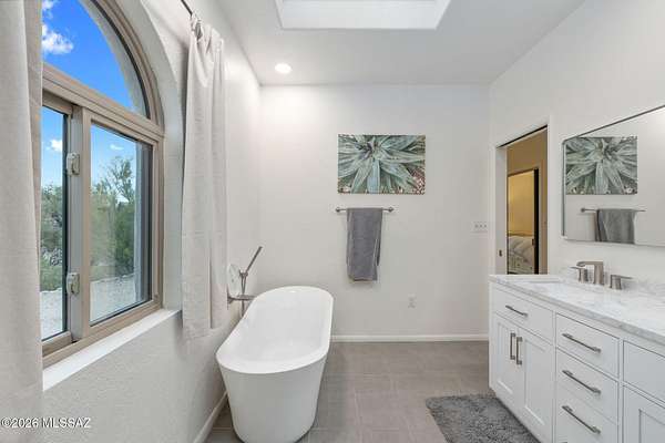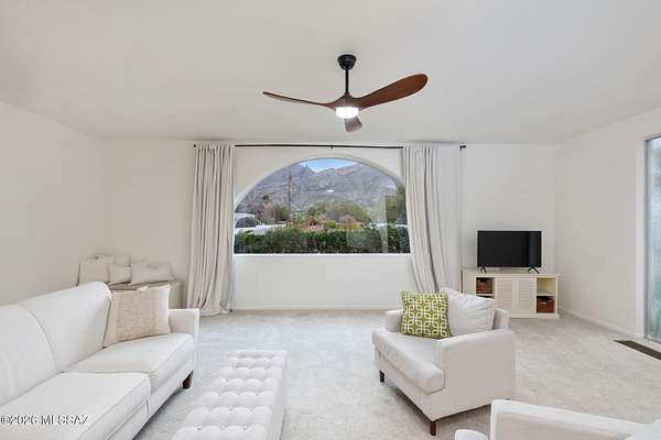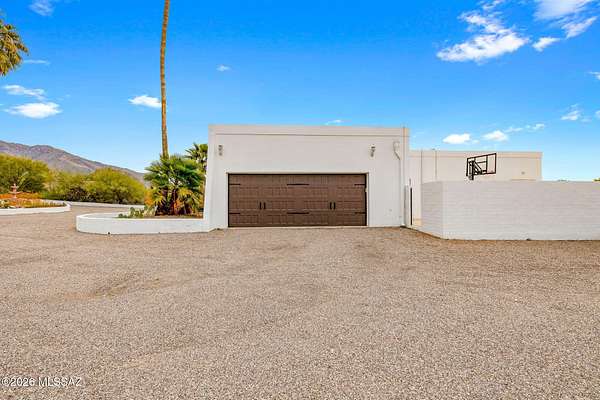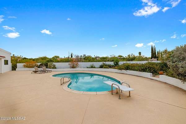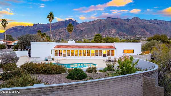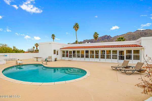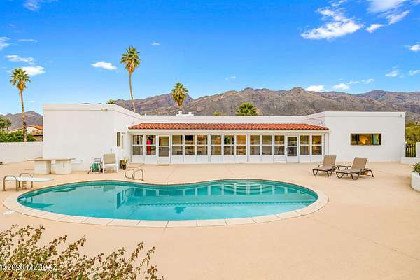 Unique opportunity for mid-century modern 4 bed/3 full bath, split floor plan, 3,631 SqFt home on massive 1.93 acre premium lot providing omnipresent Catalina mountain views in desirable Skyline Bel Air Estates, located in the vaunted Catalina Foothills school district in North Tucson. Enjoy the best of both worlds, the vintage character and charm of a single story (no stairs/no steps) 1970 masonry stucco Territorial home with 644 SqFt finished 2 car attached garage, 241 SqFt attached enclosed Arizona room, updated modern amenities, refreshing diving depth pool, sweeping city and panoramic Catalina mountain views. Enjoy multi-generation living with dual primary bedroom suites, each with a private ensuite bathroom. This thoughtfully improved residence offers a rare blend of significant recent investment and future design opportunity, making it ideal for buyers seeking a refined foundation with room to elevate further. The home has been meticulously refreshed with major system and cosmetic updates already completedallowing the next owner to focus on personalization rather than costly infrastructure. A striking first impression is set by the modern black metal French entry doors with vertical glass panes, offering architectural presence and natural light. Inside, the home feels bright and refreshed with new carpet, LED recessed lighting, and a full interior repaint completed in 2025. Inside buyers will appreciate two newer gas HVAC systems providing efficient, zoned climate control throughout the home. Newly installed Anlin windows deliver 99% UV protection and come with a lifetime warranty, enhancing both comfort and long-term value. The main primary bathroom has been fully renovated with a spa-inspired soaking tub, dual-sink full-slab quartz modern vanity, new ceramic tile flooring, and updated fixturescreating a serene, modern retreat. The open concept kitchen features freshly painted cabinetry with updated hardware, Sub-Zero fridge, unique indoor grill, built-in shelving, adjacent formal dining area, breakfast/coffee bar that offers a clean, contemporary look while leaving room for future customization. Additional improvements include a new dishwasher, dual water heaters (one newly installed), and a new vanity in the third bathroom. An oversized laundry room with utility sink, abundant storage, washer & dryer convey and direct yard access adds everyday functionality rarely found in homes of this caliber. Major exterior investments have already been completed, including a professionally recoated flat roof, new roof underlayment with updated tile roofing, and new skylights that enhance natural light throughout the interior. The garage features a professionally installed new garage door, additional storage and an epoxy-coated floor, reinforcing both durability and visual appeal. Fresh, professionally designed landscaping frames the home, supported by a new irrigation system with multiple zones in both the front and backyardensuring long-term ease of maintenance. Convenient North Tucson location, minutes away from shopping and fine dining at La Encantada in The Catalina Foothills. Sellers have spent over $100K on updates, upgrades and improvements to property since 2023 and it shows! Whether you are a local Tucsonan or a seasonal visitor looking for desert retreat, call to make your appointment to view this unique property today!