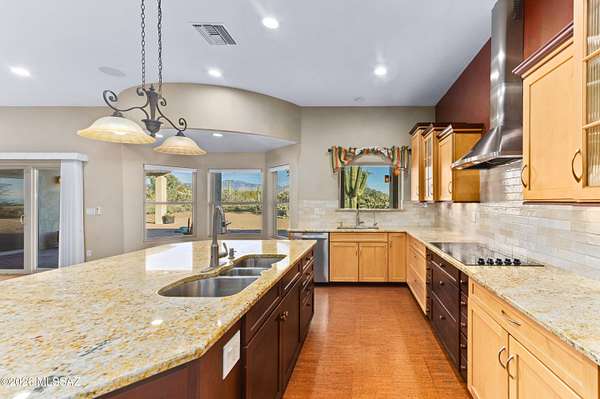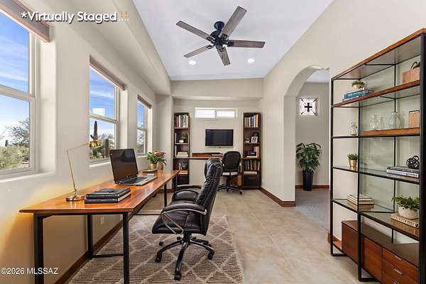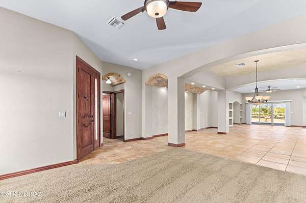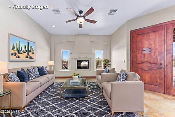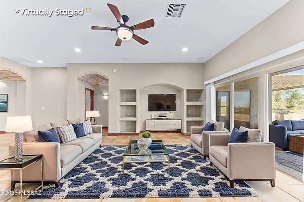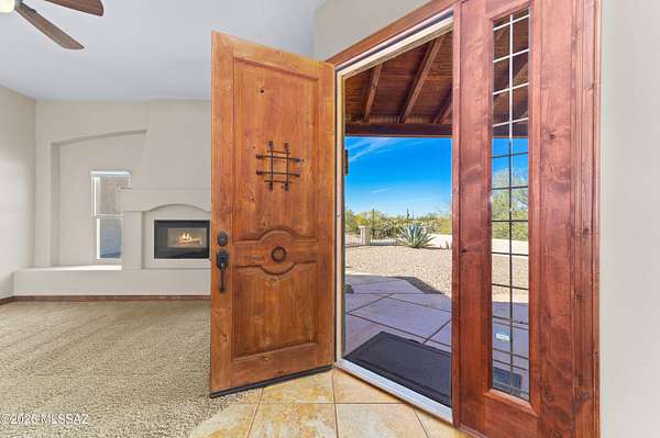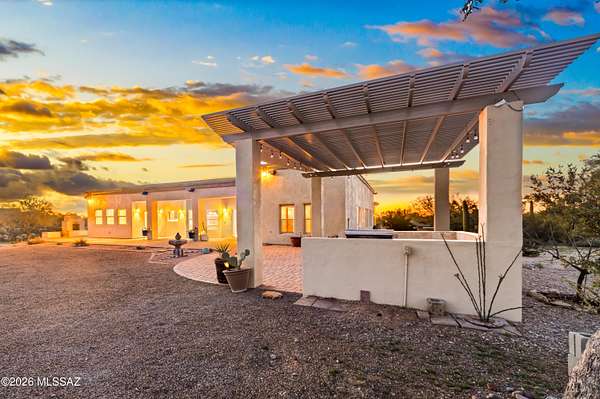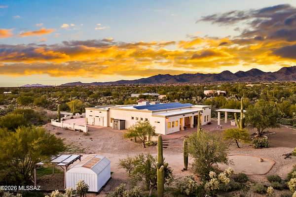 Private Sonoran Desert Sanctuary with Panoramic Catalina Mountain Views Set on 3.31 acres of pristine desert, this custom Southwest retreat offers rare privacy, no HOA, and sweeping 360 degrees Catalina Mountain and desert views. Built in 2007, the home features timeless craftsmanship with barrel-rolled ceilings, brick accents, solid knotty alder doors, and quality finishes throughout. Recent 2023 upgrades include a new HVAC system, full exterior repaint, and roof re-coating. Designed for efficiency and low monthly expenses, the property features a fully paid Tesla solar system and private water well, resulting in low utility costs. Outdoor living shines with a newly added covered pergola and built-in grill-perfect for entertaining or enjoying peaceful desert evenings. Landscaped yards transition seamlessly into natural desert surroundings. Zoned SR with room for RVs, horses, a guest casita, or future expansion. Spacious 3-car garage and access via a private, well-maintained gravel road. An adjacent 3.32-acre parcel is available for separate purchase. Enjoy luxury desert living just minutes from Tucson amenities.