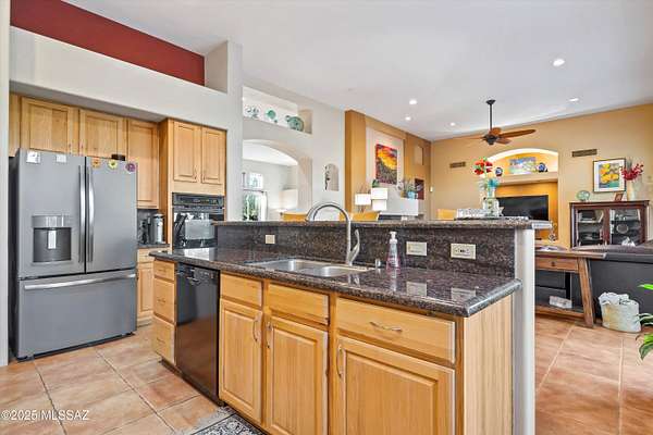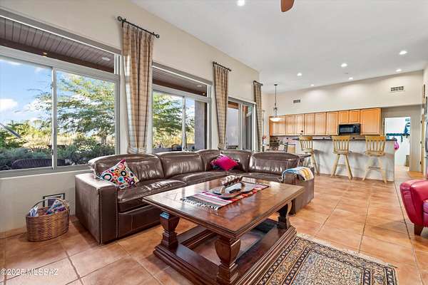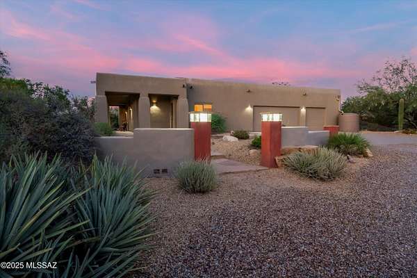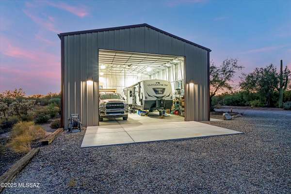 A one-of-a-kind retreat on Tucson's northwest side, this property is perfect for anyone seeking privacy, space, and flexibility. The impressive 30' x 40' RV garage and workshop offers endless options, store your RV, or create the ultimate hobby space. There's also an attached 3-car garage, with the third bay featuring its own mini split system for heating and cooling, ideal for a studio, home gym, or workspace. Set on 3.3 acres with no HOA, this property sits at the end of a quiet cul-de-sac and provides the freedom to live how you want. Gardeners will love the raised planters, irrigation, and shaded areas already in place, just bring your seedlings! After a day outdoors, relax in the heated pool, enjoy mountain views from the spacious patio, or unwind beneath the