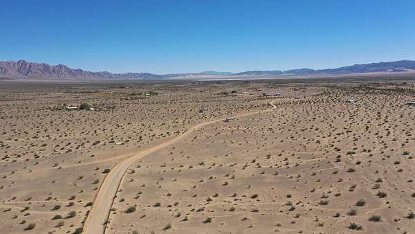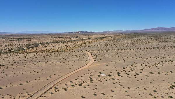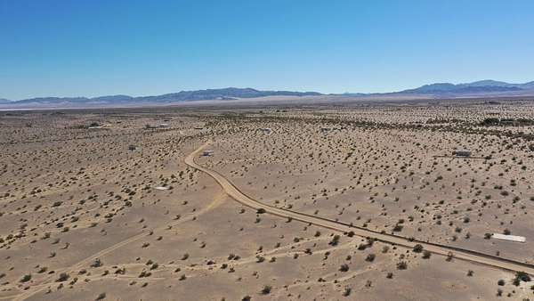 This 5-acre property in San Bernardino County, California offers desert living potential with county-maintained dirt road access, level terrain split by road, and Rural Living zoning allowing diverse residential uses in Wonder Valley.