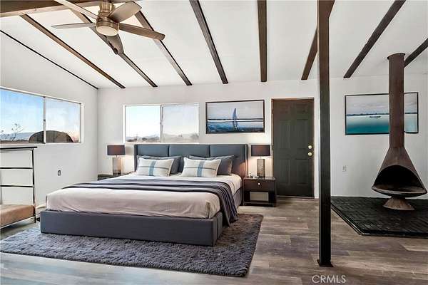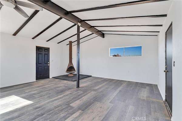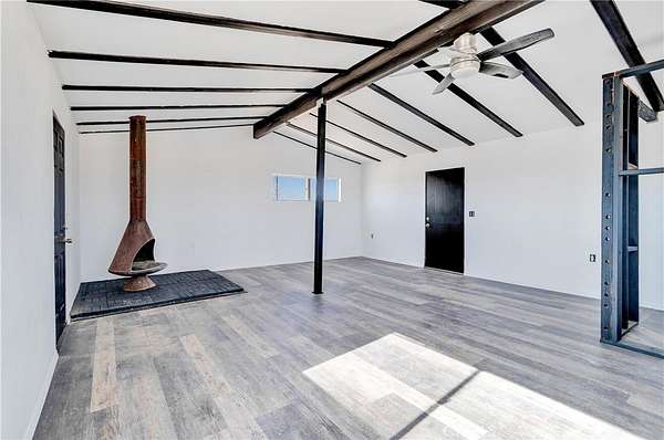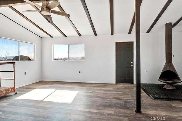 Joshua Tree back entrance location - Ultimate Wonder Valley private Rec Cabin with simple luxury in the High Desert on five expansive acres. Professionally renovated - this spectacular tiny home features an airy living and dining space with beamed ceiling with custom framed doors and windows, Morso WB fireplace and a generous living area. Brand new double lined stucco on the outside and fully insulated detailed craftsman finished work on the inside. NEW ROOF just installed and 20 foot beamed ceiling at the peak. Upgraded Electric Panel. The Power is on to this house and previously had hauled water. Bathroom and Kitchen framed will need to be finalized. Area is booming with Artists, New Restaurants, and Hip People of all ages. Wonder Valley is less than 15 minutes from the entrance to Joshua Tree National Park! As you approach the property, 360 degree panoramic views surround you, stretching from JTNP to the south to Mojave Trails National Monument to the North. The charming facade with its stonework accents welcomes you to explore further w- 5 private acres, you have plenty of room to expand your dreams. There are fewer and fewer of these unique Rec Cabins that haven't be bought up by big land companies - don't miss out on your chance to own your personalized hi-desert hideaway. Move in ready. Pictures say it all. Offered $79,900 Firm CASH. (Property is virtually staged)