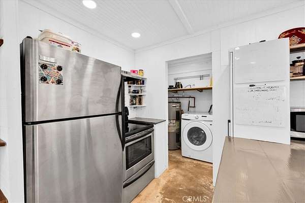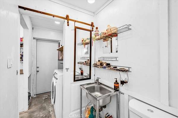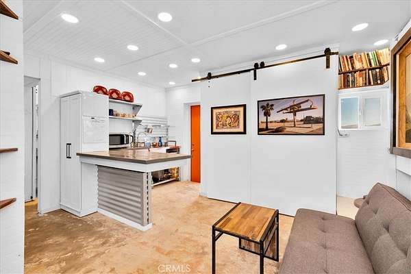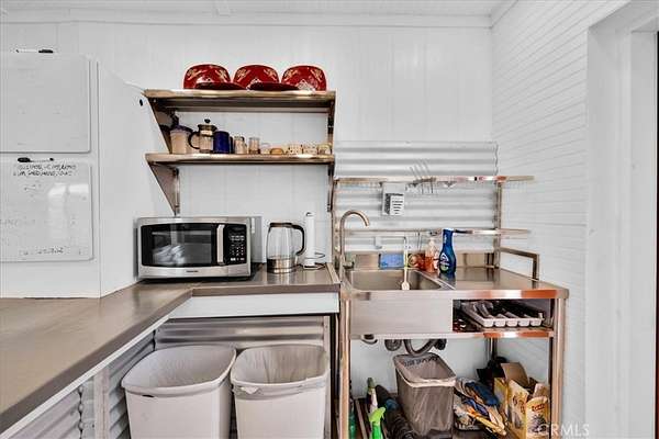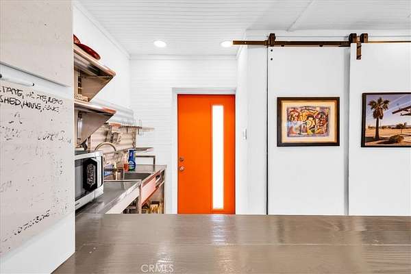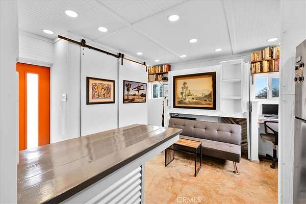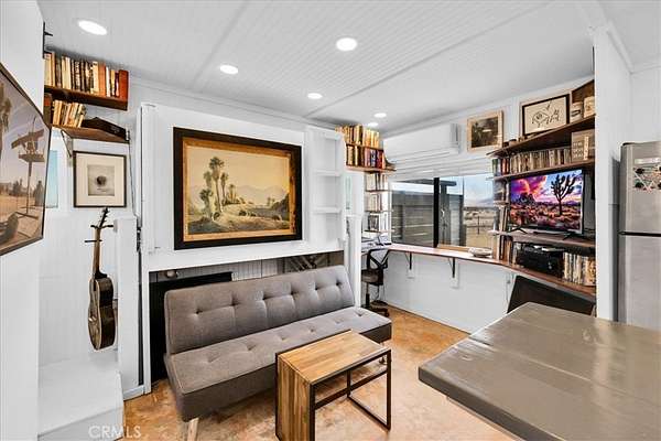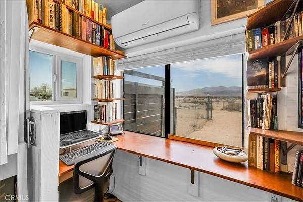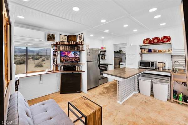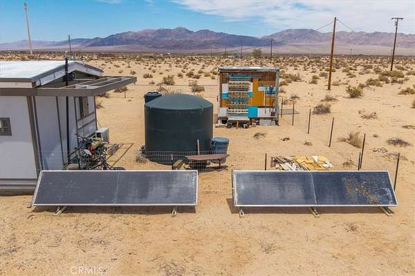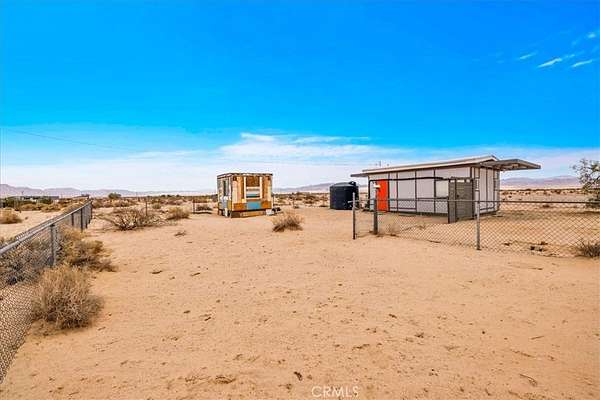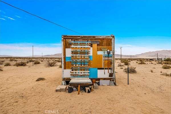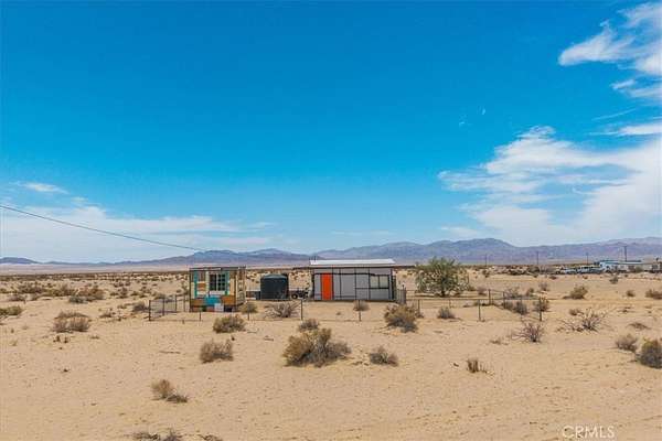 Nestled on a private 5-acre lot in sought-after Wonder Valley, this fully renovated recreational cabin is the perfect blend of smart design and modern convenience. Every detail has been thoughtfully upgraded, making the most of the 280-square-foot footprint to deliver a completely livable, turn-key space. The cabin features a full stainless steel kitchen with an electric stove, refrigerator, and a sleek, integrated design. A built-in elevated Murphy bed maximizes floor space, while a custom built-in entertainment center adds both function and style. Comfort is ensured year-round with dual mini split systems for efficient heating and cooling, recessed LED lighting on dimmers, and dual-paned windows throughout. Utilities are fully set up: connected electricity, a 2,500-gallon hauled water tank, and a solar panel water heater that supports both the water heater and washing machine. Outside, the fully fenced backyard features a creatively built shed made with recycled colored wood--perfect for storage or workspace. The property is set back from the road, offering a sense of privacy while still being conveniently located just past The Palms Restaurant and minutes from Joshua Tree National Park. This is a rare opportunity to own a fully functional and modern micro-home on a spacious desert lot--perfect for anyone seeking simplicity, self-sufficiency, and smart design. A true one-stop shop.