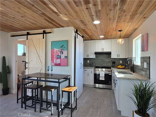 Outside, enjoy wide open desert skies, incredible sunsets, and a large covered pergola patio perfect for outdoor dining, entertaining, or relaxing under the stars. Located approximately 15 minutes from the North Entrance of Joshua Tree National Park, and a short drive to restaurants, shops, and local markets in Twentynine Palms. Whether UR searching for a weekend escape, winter retreat, full-time desert home, or short-term rental investment, this property delivers a rare combination of design, land, privacy, and unique natural features. This one is a desert experience! Call today to schedule your private showing!