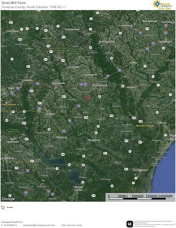 Grist Mill Farm encompasses +/- 1,336 contiguous acres of land for sale in Timmonsville, SC. This prime agricultural property is ideally located just 15 minutes from Florence and 30 minutes from Sumter. Strategically located less than 2 miles from I-95 Exit 153 at Honda Way, Grist Mill Farm is perfectly positioned for diverse investment opportunities. Whether you're looking to expand agricultural operations, invest in timberland, or prepare for future growth, this property offers limitless potential.